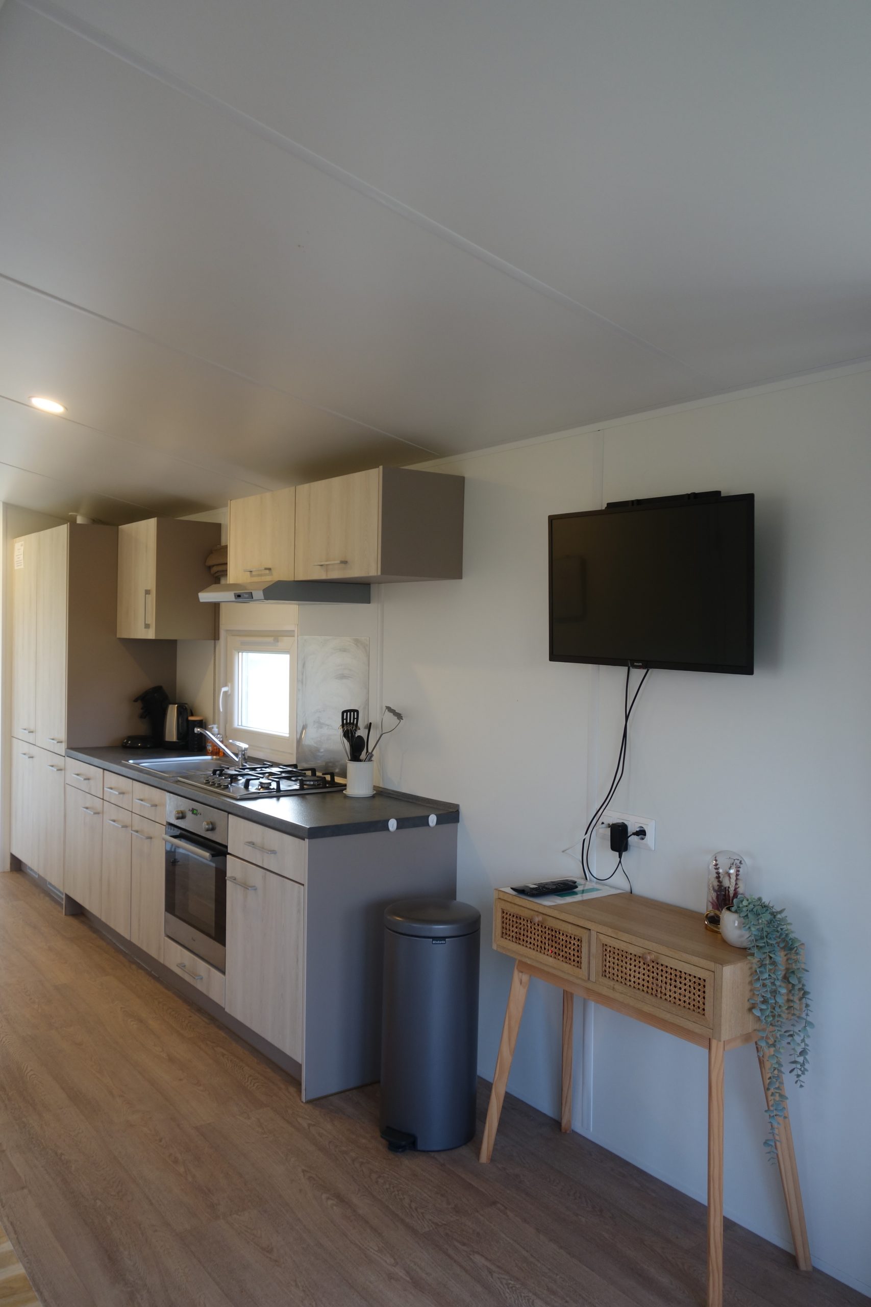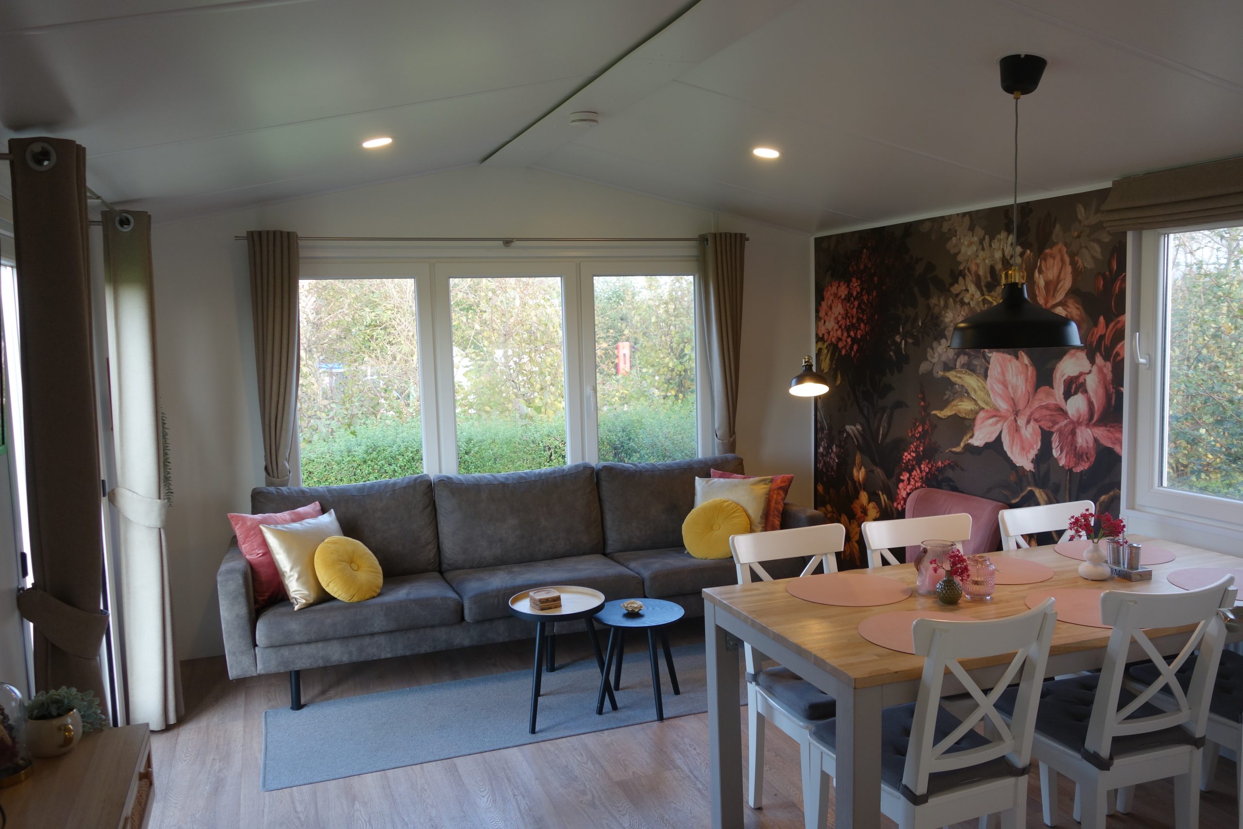 Deze chalet is jaar 2018 op onze camping geplaatst. Deze chalet is 14 meter lang en 4 meter breed. 56 m2!